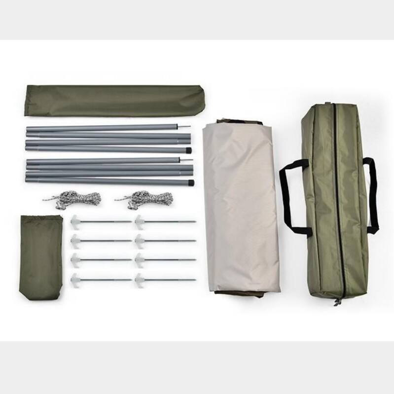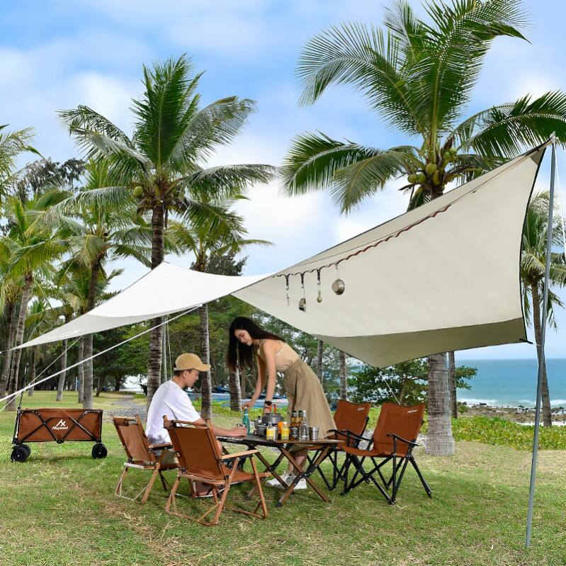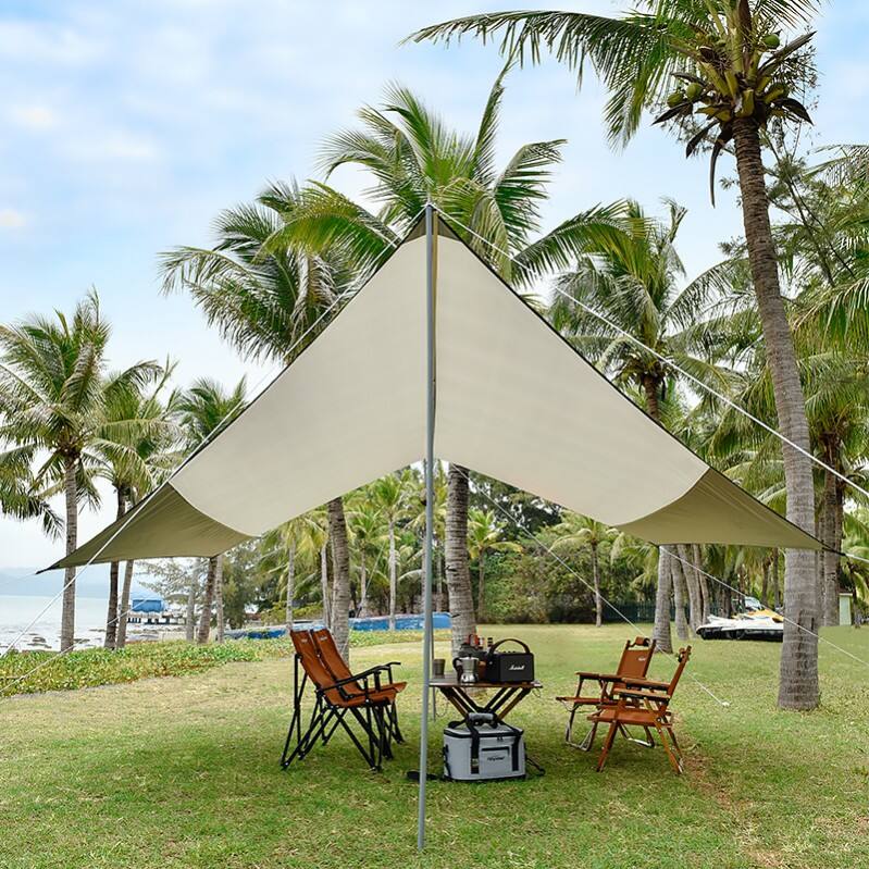 The generous 22.5 square meter coverage area (approximately 4.5x5 meters) establishes this product as an ideal shelter for groups and families. This substantial footprint can comfortably accommodate 8-10 people with camping chairs and gear, or serve as a protective cover for multiple tents in a campsite arrangement. The dimensions are strategically calculated to provide optimal coverage for standard family camping setups while remaining manageable for transport and deployment.The rectangular configuration offers more efficient use of space compared to square designs, allowing better coverage of elongated camping arrangements. The 4.5-meter width provides ample coverage for dining areas with tables and chairs, while the 5-meter length ensures comprehensive protection. This size represents the sweet spot between providing substantial coverage and maintaining practical portability, making it suitable for everything from weekend camping trips to extended outdoor expeditions.Triple-Function